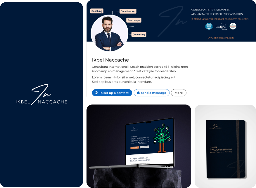 Ikbel Naccache, a management consultant, organizational coach, and Management 3.0 facilitator, sought a brand identity that embodies his expertise in people-centered leadership and forward-thinking management. The goal was to design a cohesive visual identity and tools to support his initiatives, including the first Management 3.0 bootcamp in Tunisia.